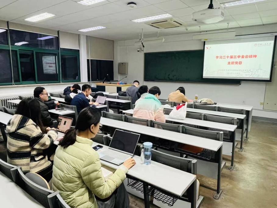 11月20日,2023级博士生党支部于公共教学楼3101教室围绕党的二十届三中全会精神开展专题学习研讨。活动由视频学习与研讨交流两部分组成。观看二十届三中全会视频课后,与会党员就进一步全面深化改革的动力机制、宣传最新理论、深化学术研究、创新支部活动形式等方面发表了自己的看法。经过学习,支部党员一致认为,要坚定信心信念,结合专业特色讲好新时代党的改革故事;要增强理论学习,在日常生活中自觉学习贯彻全会精神;要主动作为,勇于创新,将所学所思所悟运用在实际,推动支部工作再上新台阶。
