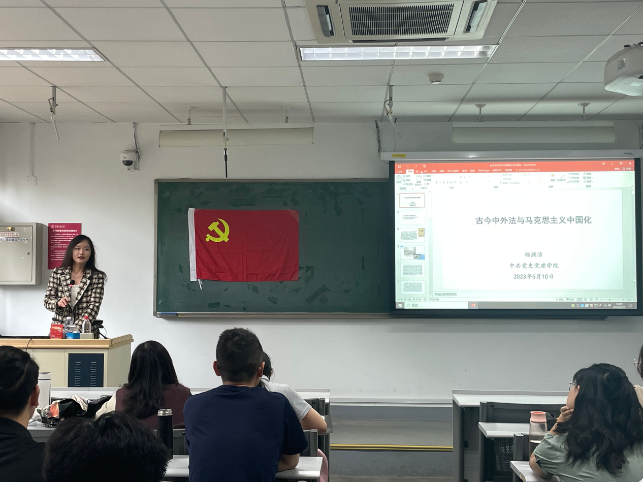 发布日期:2023-05-125月10日下午,必赢亚洲app 主题教育专题党课暨第1期入党积极分子培训班第三场讲座在公共教学三楼3302教室举行。必赢亚洲app 党委副书记杨澜洁作以“‘古今中外法’与马克思主义中国化”主题党课,30余名入党积极分子参加。