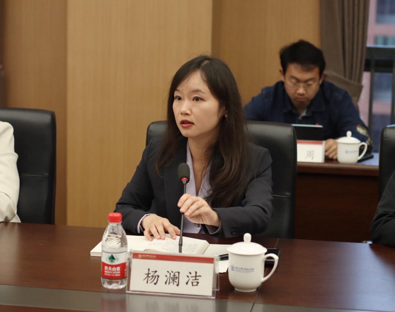 杨澜洁介绍了我院师生在杭州调研娃哈哈、万事利等非公企业党建的体会和收获,并表示要学习浙大马院开展党建工作的宝贵经验,多多进行联学交流。