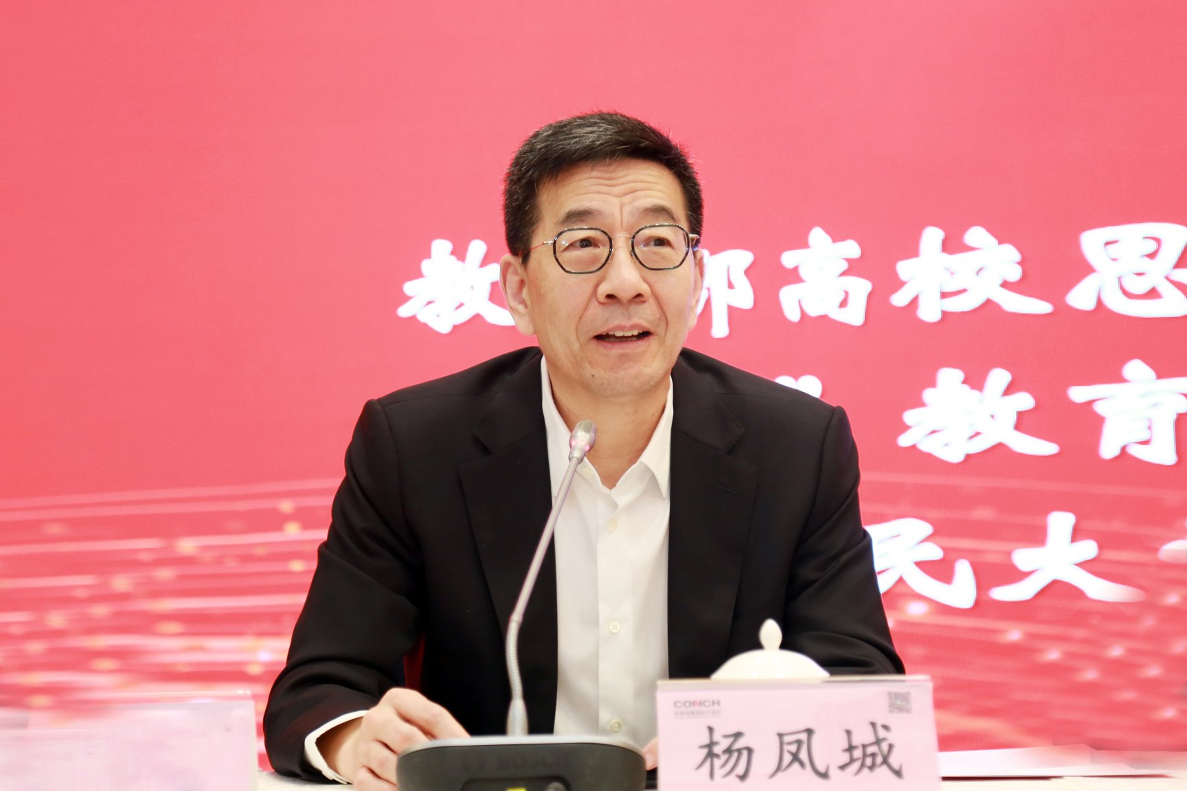 杨凤城在致辞中表示,本次大会旨在围绕中共党史党建学与高校“大思政课”建设的主题,探讨如何进一步深化高校“四史”宣传教育,推动中共党史党建学高质量发展。他认为,要善用“大历史观”来开展“四史”教学与研究,要将中国共产党的百年奋斗与中华民族五千多年悠久文明贯通起来,将中国共产党人的历史奋斗与近代以来中国先进人士的探索更紧密地连接起来,将中国共产党的历史奋斗作为一个整体来看待。