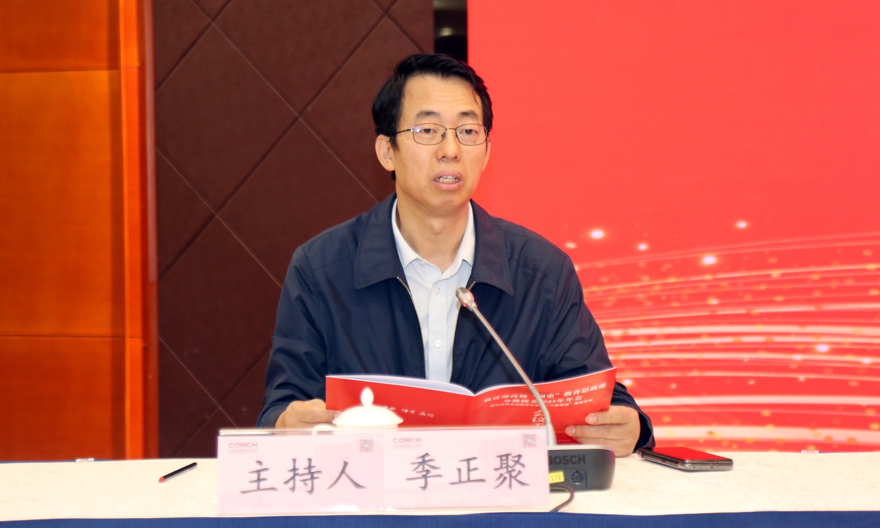 大会主旨报告环节由经济日报社副总编辑、教育部“四史”教育思政课分教指委副主任委员季正聚研究员主持。